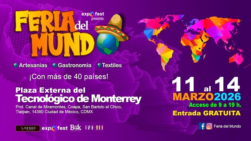 La FERIA DEL MUNDO llega del 11 al 14 de Marzo a la Plaza Externa del Tec de Monterrey, Campus CDMX,