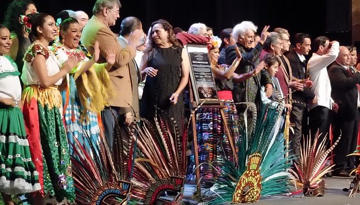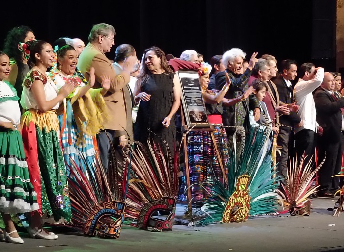 Para celebrar las 100 Representaciones y develar la placa alusiva de esta puesta en escena, se dieron cita en el Teatro de la Ciudad, diferentes personalidades del mundo de espectáculo, (Carlos Benavides, José Luis Cordero “Pocholo” y José Luis Duval, entre otros), representantes del INBAL, CANACO, Secretaria de Cultura, Comunidad Triqui, Comunidad Zapoteca, Empresarios de Arte y Cultura, Embajadores, familiares del gran Emperador Moctezuma, quienes develaron con gran orgullo la placa conmemorativa.