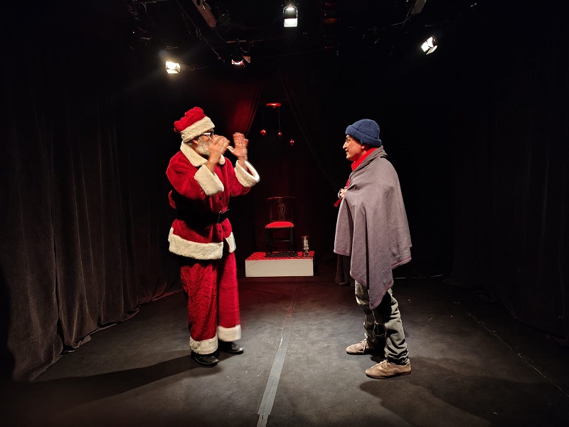 Las manos que manchan el cristal, de Juan Cristóbal Castillo y Tabita Sagredo, bajo la Dirección de Juan Carlos Cuéllar y con asistencia de Laura Altamirano, es una puesta en escena producida por Tadeco Teatro que confronta al espectador con una crítica contundente al consumo desmedido asociado a la Navidad.